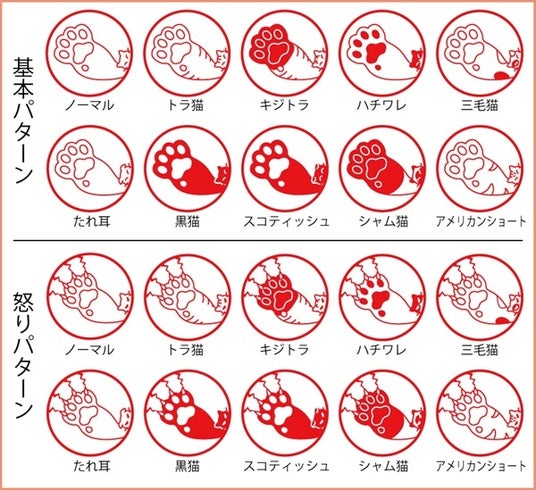 品種ごとに、基本パターンと怒りパターンがあり、合計20種類の中から選ぶことが出来ます。