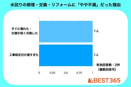 「やや不満」となった理由は「すぐに壊れた・仕様が低く交換した」「工事設定日が遅すぎた」と、業者の対応力が問われる結果となりました。