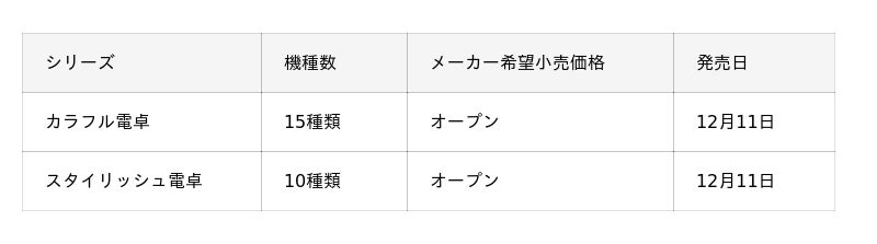 カシオ計算機は、デザイン電卓の新製品として、選ぶ楽しさと自分らしさをコンセプトにした多彩なカラーの「カラフル電卓」 15機種と、素材の質感にこだわり、 洗練さと上質さを追求した「スタイリッシュ電卓」10機種を、12月11日に発売します。