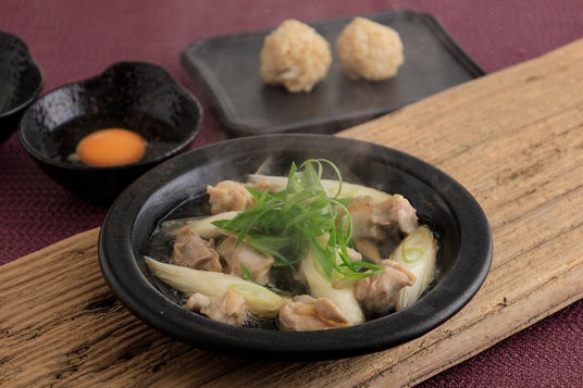 福島県伊達郡の最南東に位置する、阿武隈産地の豊かな自然に恵まれた川俣町で育てられる、川俣シャモを鍋に仕立てました。川俣シャモは深みのあるコクと、適度な弾力が特長です。たまごを付けて食べるすき焼き風で、セットとして付いてくるてまり玄米と一緒にお楽しみください。