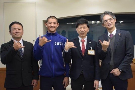 長坂市長は「まずは公式戦に出ること、そしていずれは日本を代表する選手になってほしい。頑張ってください。おめでとうございます」とエールを送りました。