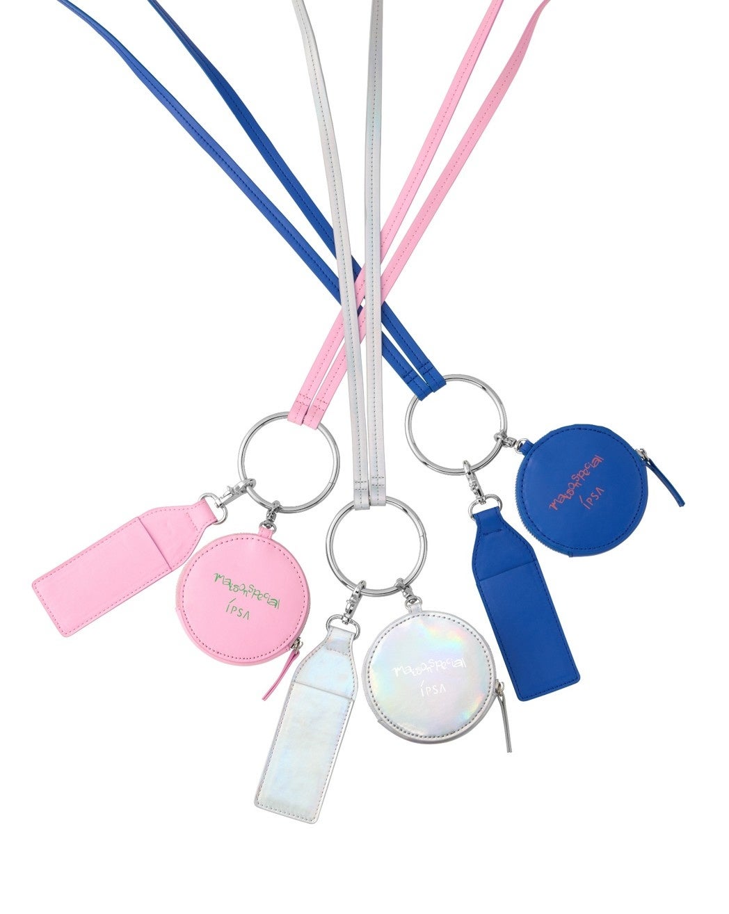 MAISON SPECIAL特別エディションのリングショルダーポーチ。イヤホンやリップなどの小物の持ち運びに便利。ポーチ部分をお手持ちバッグに付けることも可能。また、今回の限定コレクションであるザ・タイムR デイエッセンススティックe、コントロールパウダーもぴったり入るサイズズ。3色(ピンク、オーロラ、ブルー)から1品選択可能。