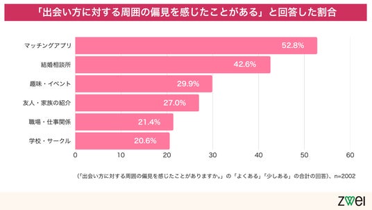 2. 結婚後の満足度は高いのに……出会い方に対する周囲の偏見は、マッチングアプリと結婚相談所がダントツ!
