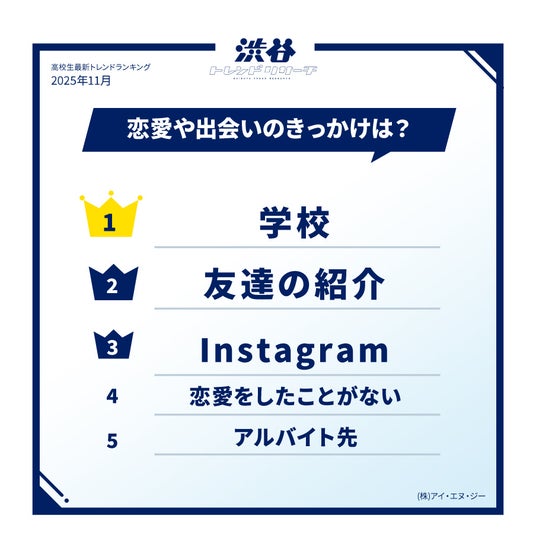 【イマドキ高校生の最新!恋愛調査】理想の芸能人夫婦&恋愛のきっかけTOP10の発表!今月のネクストトレンド「Meitu」とは…?高校生最新トレンド2025年秋!渋谷トレンドリサーチ