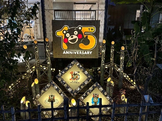 熊本県の営業部長兼しあわせ部長を務めるくまモンが、2025年3月にデビュー15周年を迎えるにあたり制作した「くまモン15周年記念ロゴ」モチーフの竹あかりオブジェを展示します。