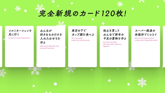 本作『この冬 私たちは、』は『これから私たちは、』の冬季限定バージョンで、冬ならではの「これがやってみたかった!」と思うカードが盛りだくさん!『これから私たちは、』の拡張版ではなく、カード120枚すべて刷新した完全新作のゲームです。