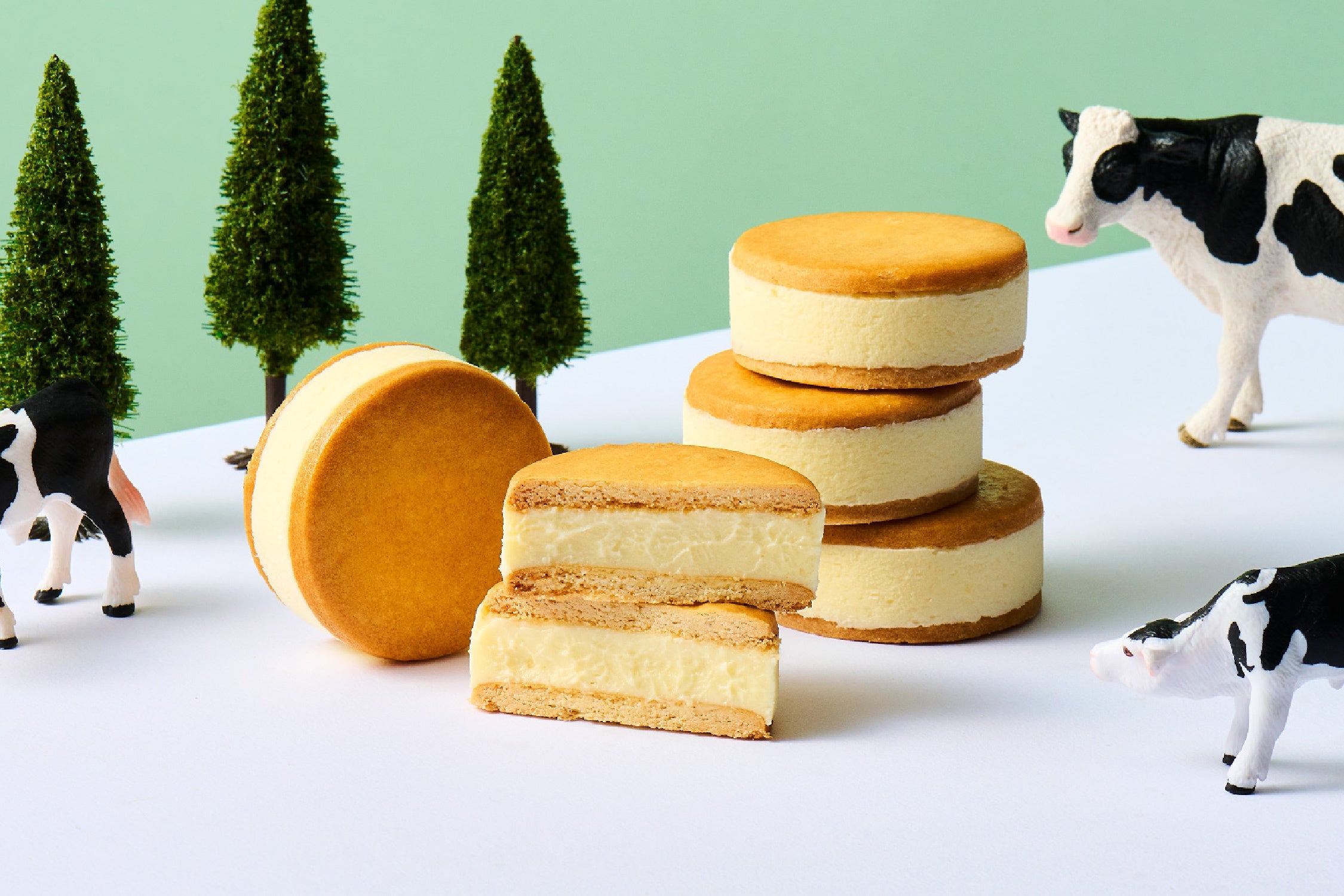 マスカルポーネチーズと生クリームで仕上げた特製ミルククリームを、さっくり軽い食感のバターサブレでサンドした、濃厚ミルクのサブレサンド。朝霧高原の恵みをたっぷりお楽しみいただける〈ミルク〉、濃厚でほろ苦いミルクコーヒーの味わいをお楽しみいただける〈ミルクコーヒー〉、静岡県産の抹茶が芳醇に香る〈静岡抹茶クリーム〉の3種をご用意いたします。