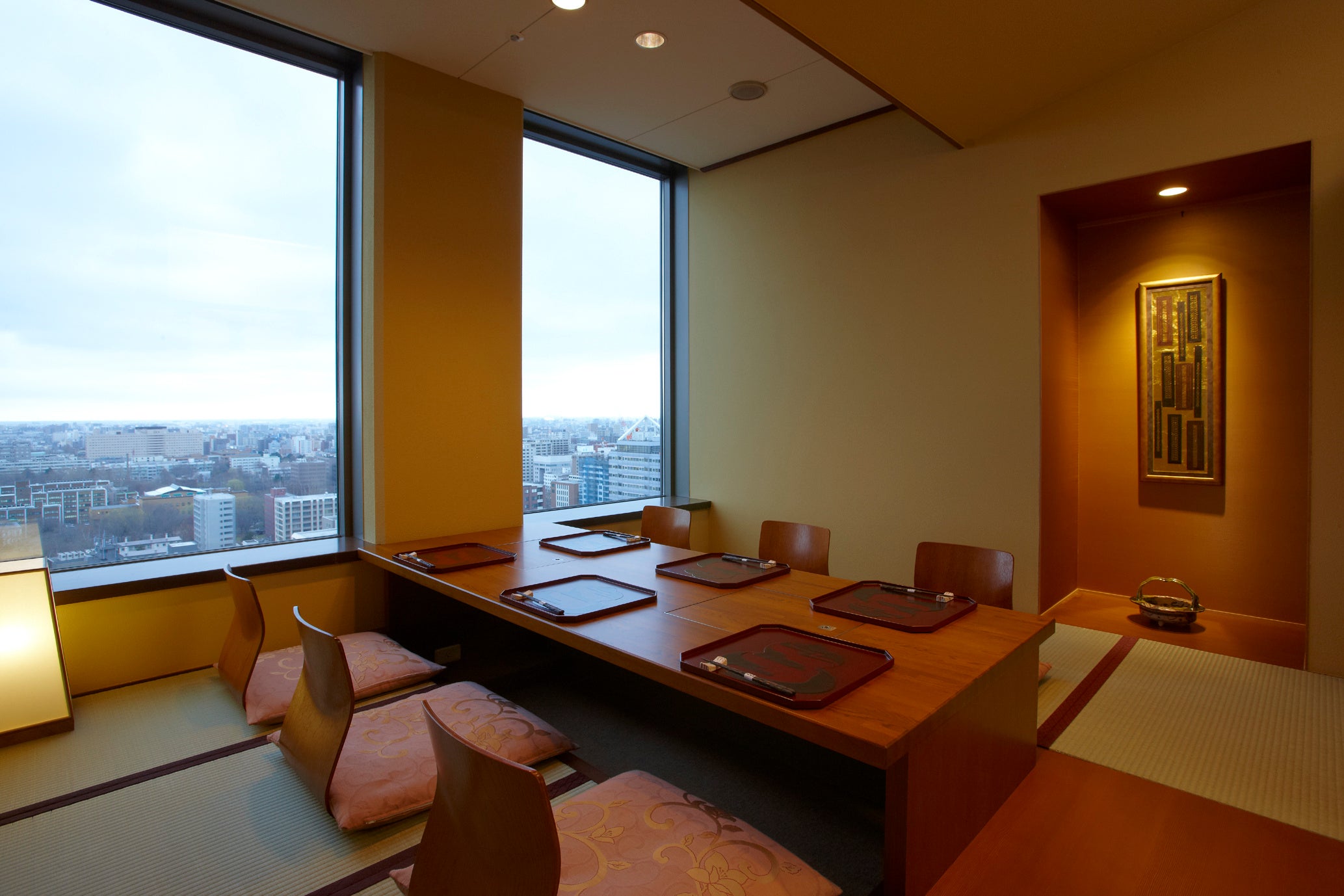 ホテル最上階の22階に位置する〈みやま〉は、札幌の景色を一望できる特別な空間です。