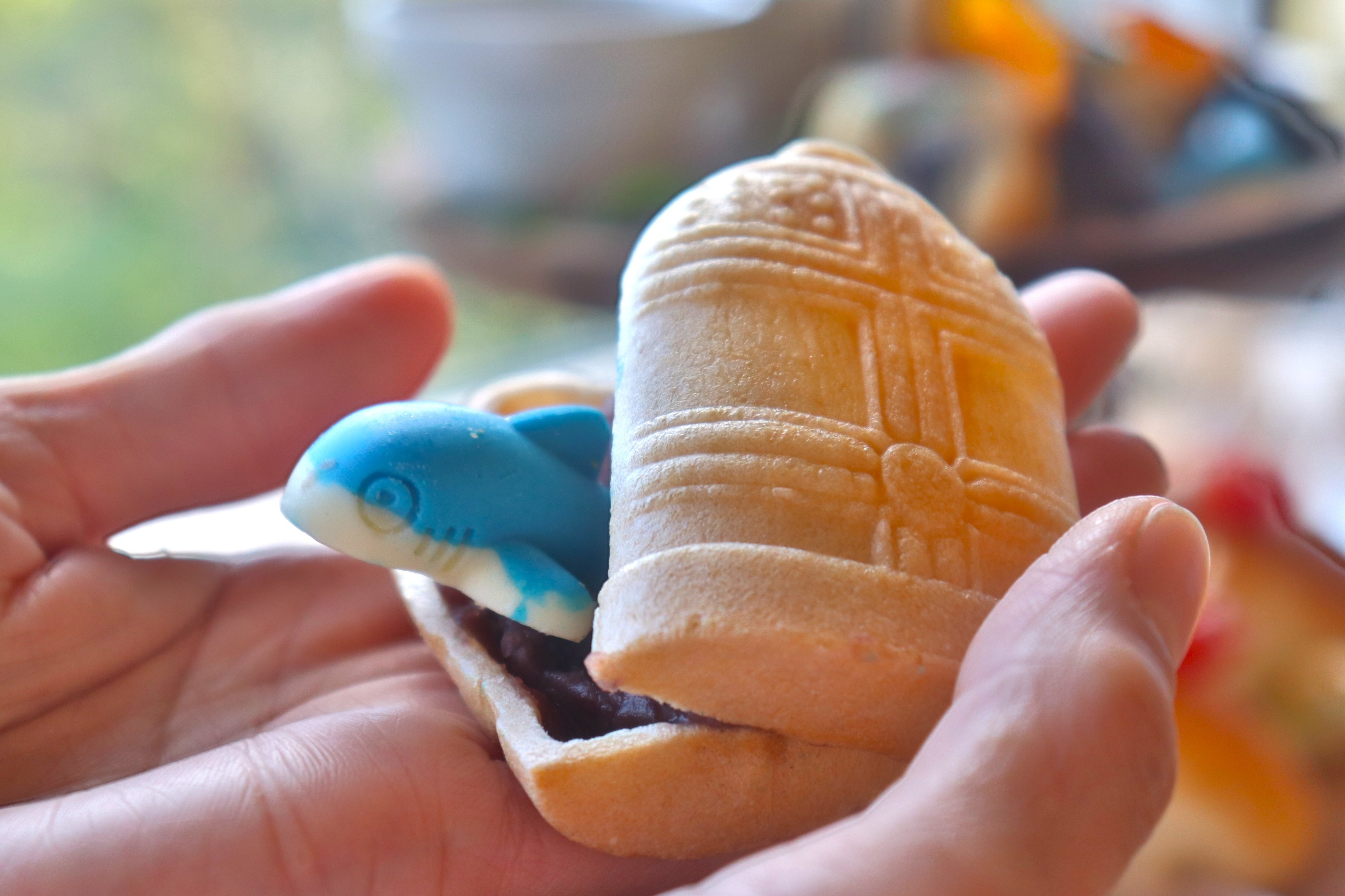 民話をもとに考案した話題のスイーツ「ぼんぼん鮫最中」