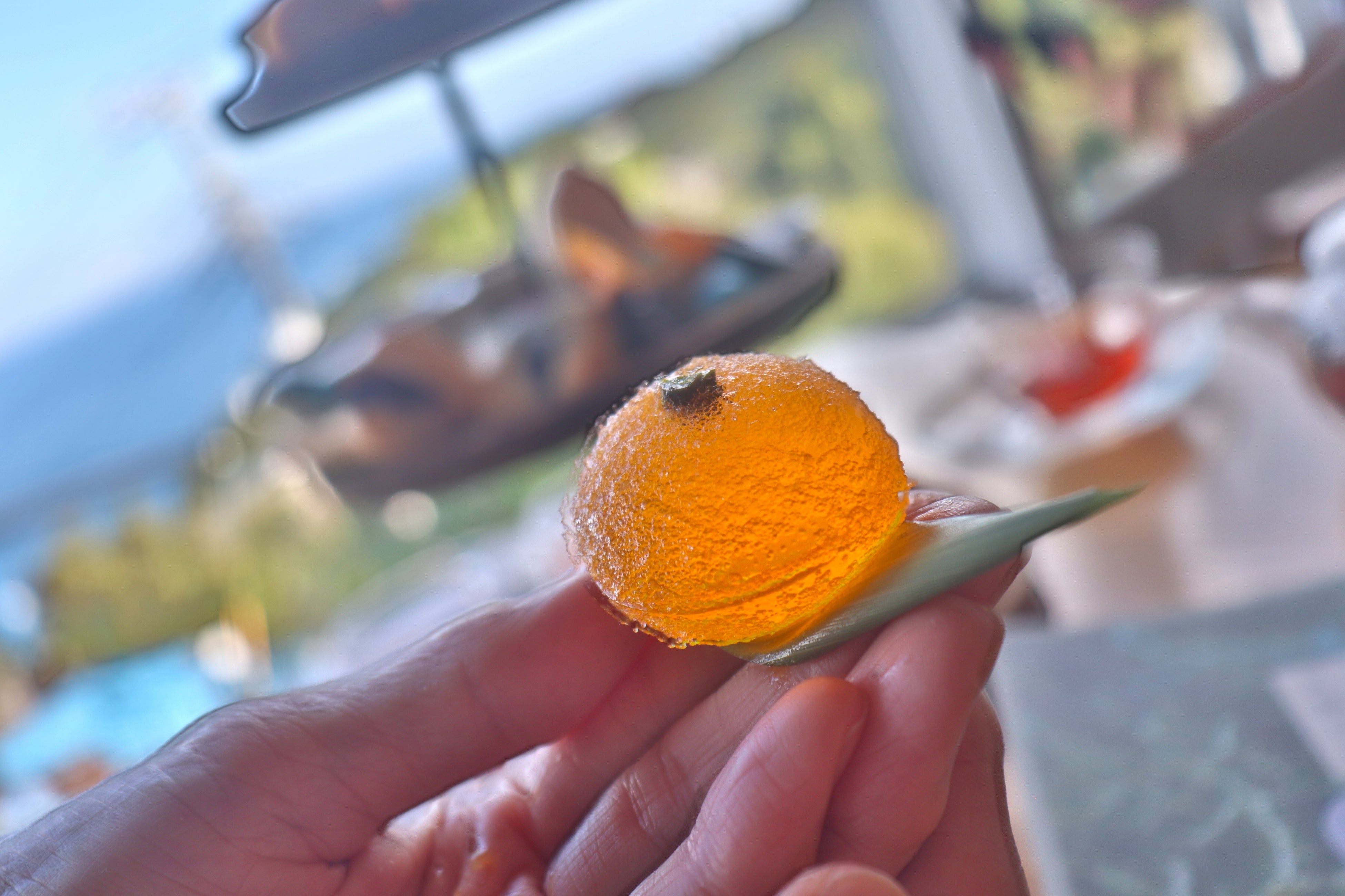 地元柑橘のパート・ド・フリュイ、真鶴オリーブマフィンとチョコレートケーキ、真鶴柑橘のクレープ ブッシュドノエル風