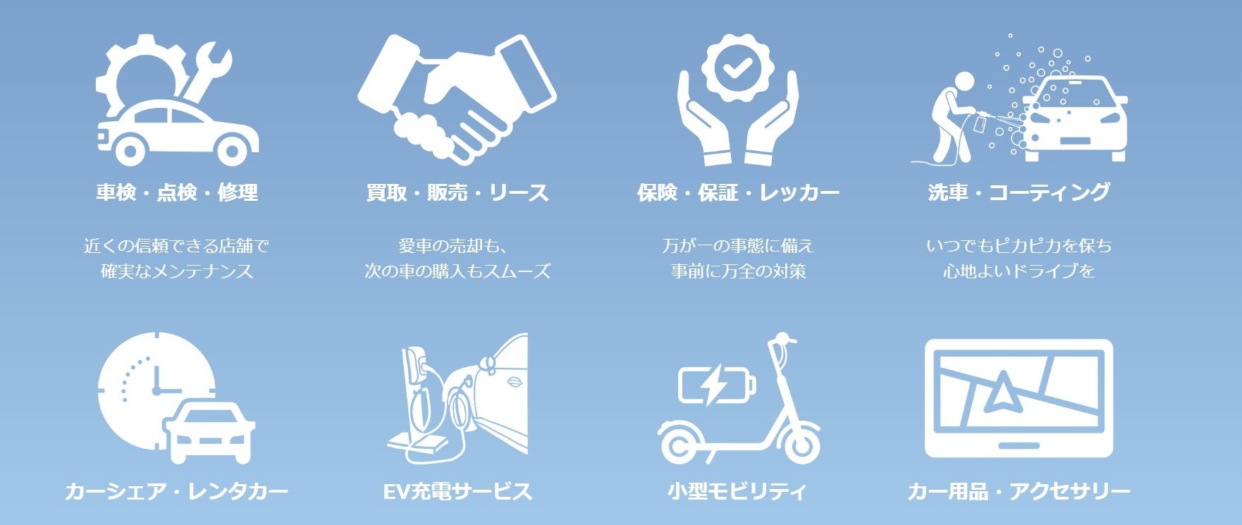 ご自身のお車情報を登録いただくと、お車に合わせたさまざまなサービスの情報を入手でき、必要なサービスに簡単にお申込みいただける便利なアプリです。