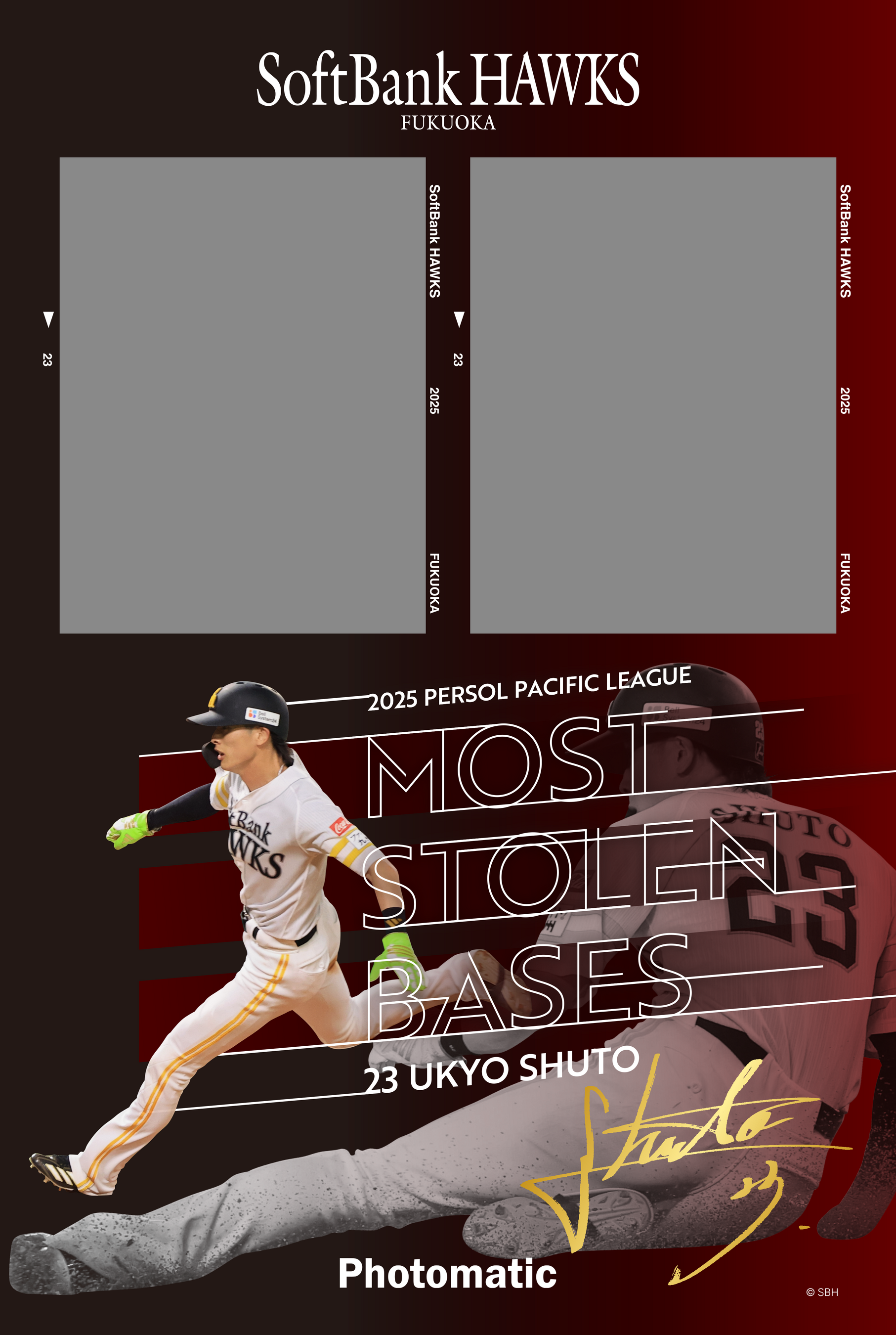 キタムラ・ホールディングス グループのピックハイブ株式会社(本社:東京都新宿区、代表取締役社長 兼 COO:大迫 由典)が運営するセルフフォトブランド「Photomatic(フォトマティック)」は、プロ野球球団「福岡ソフトバンクホークス」の2025年シーズンを彩り、リーグ最高峰のタイトルを受賞した選手たちの栄光を記念した限定フレームを2025年11月17日(月)からPhotomatic BOSS E・ZO FUKUOKAで発売します。