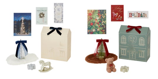 お部屋の一角に小さなクリスマスの世界をつくれる、スモールスペース向けのデコレーションセットです。ミニツリーやオブジェ、キャンドル、デザインカード、ミニマットがセットになっており、並べるだけでクリスマスのコーディネートが完成します。さらに、おうち型のパッケージを背景として飾ると、まるで小さなクリスマスの物語が広がるような空間に。大きなツリーを飾るスペースがなくても、プチパーティーやちょっとした飾りつけを楽しみたい方におすすめです。「おうちでもクリスマス気分を楽しんでほしい」「小さなときめきを贈りたい」そんな気持ちを込めて贈るのにぴったりのアイテムです。
