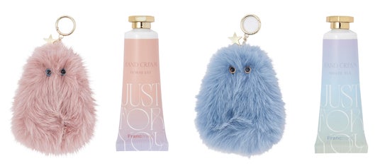 毛足の長いモフモフのキャラクターチャームと、ハンドクリームのセットです。チャームは背中にジッパー付きのポーチ仕様で、ハンドクリーム1本をぴったり収納できます。「クリスマスツリーの妖精」をイメージしたキャラクターには、トップに星形のチャームをあしらい、ホリデーシーズンにぴったりのデザインに仕上げました。かわいらしさがありながら、大人でも持ちやすいトーンで、冬のバッグに遊び心とぬくもりを添えてくれます。トレンドのバッグチャームとして、外出先でもハンドクリームを持ち歩けて、乾燥が気になる季節のケアを香りとともにお楽しみいただけます。