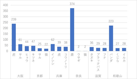 関西地方の各府県には、さまざまな理由で、地域に強く結びつくイメージの動物がいます。地域の特徴を別の角度から検証し、地域活性化のヒントを得るために「地域を象徴する生き物」について調査しました。