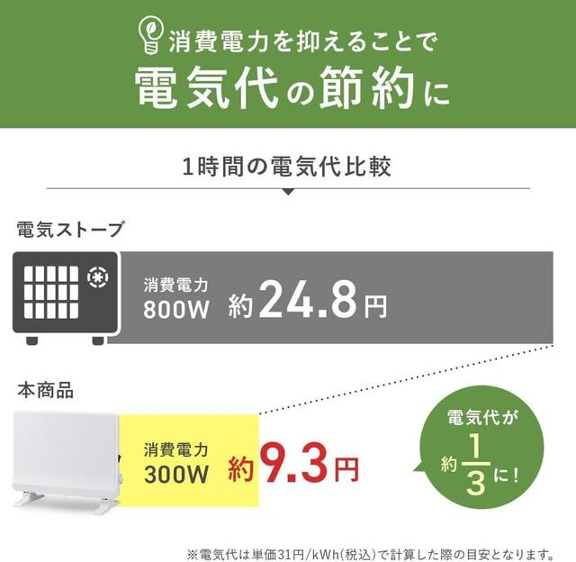 消費電力は300Wと少ないので、電気代を抑えながら使えるのも助かりますね。