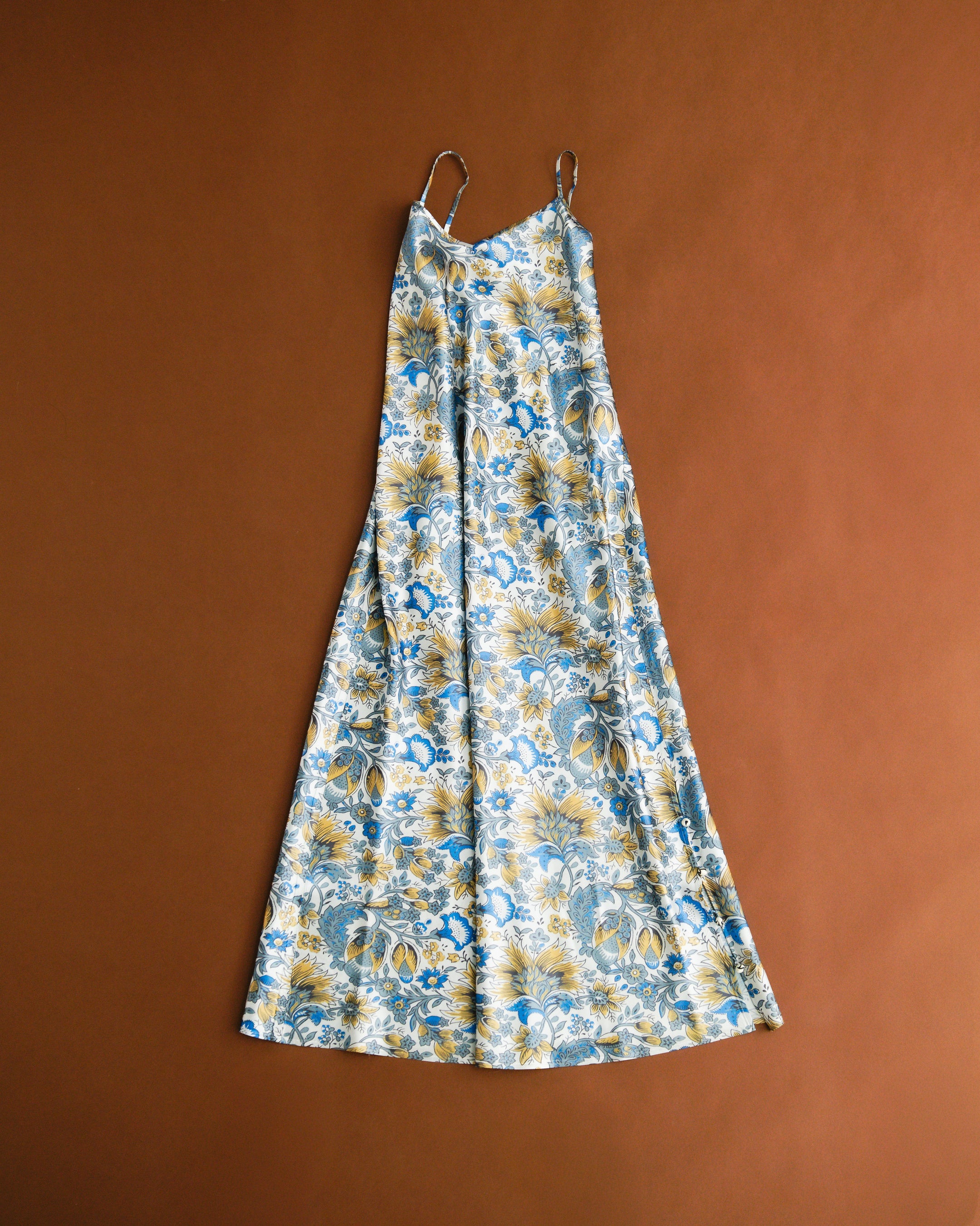 咲き誇る大輪の花と、静かに息づくつぼみが寄り添うように配置されたこの柄は、幾重にも色が重なり、秋の街にしっとりと馴染む深みのある色合いながらも、まとう人に華やぎを添えてくれます。