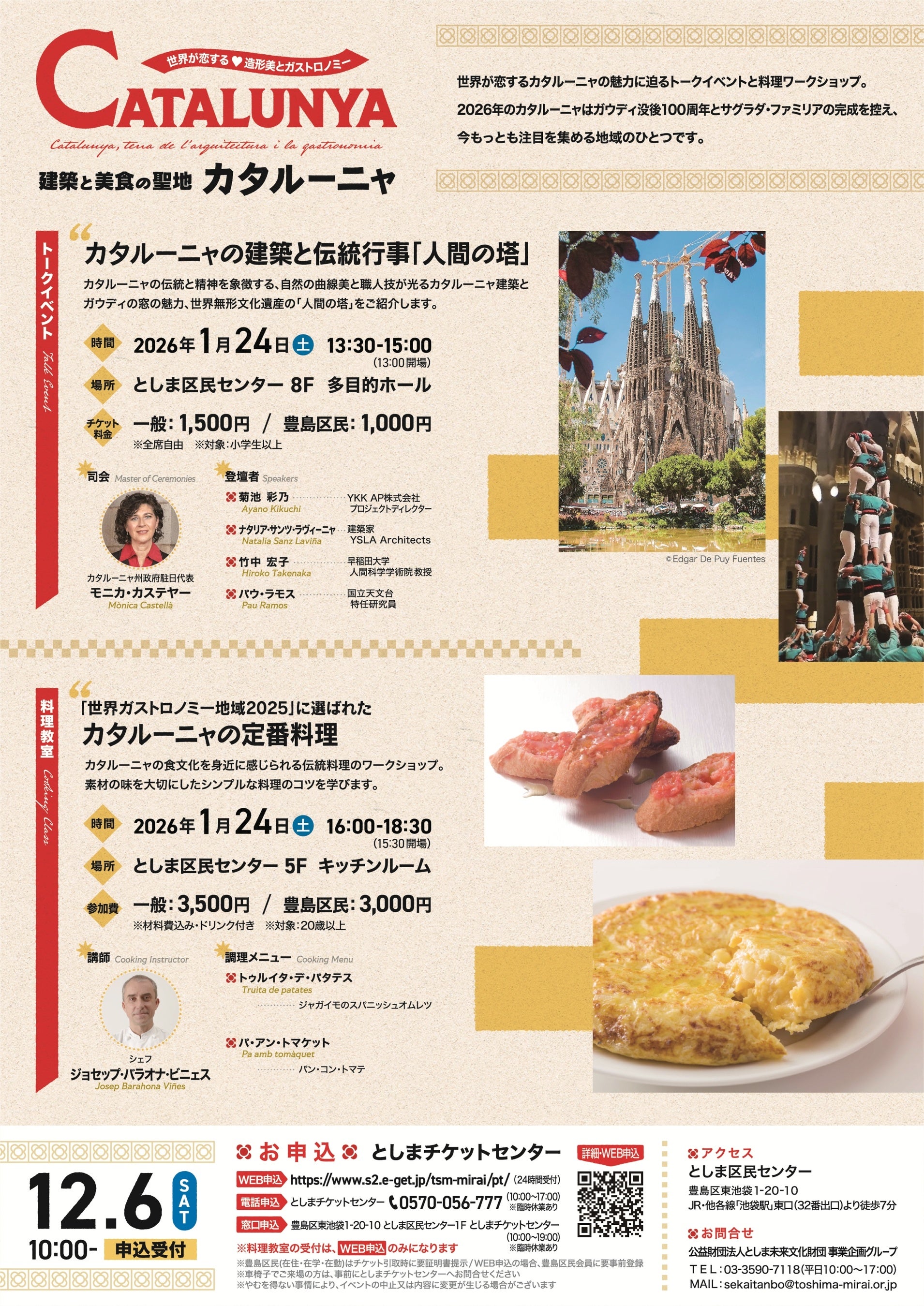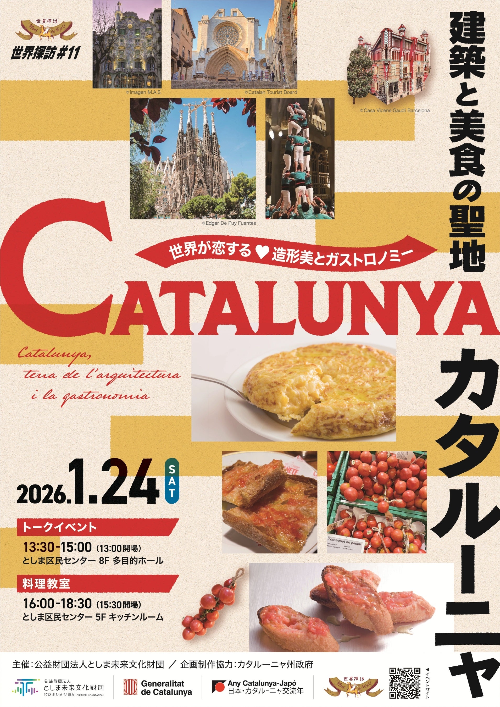 公益財団法人としま未来文化財団(所在地:東京都豊島区、理事長:合場直人)は、世界が注目するカタルーニャの魅力に迫るトークイベント&料理ワークショップ「世界探訪#11 建築と美食の聖地 カタルーニャ」を開催いたします。