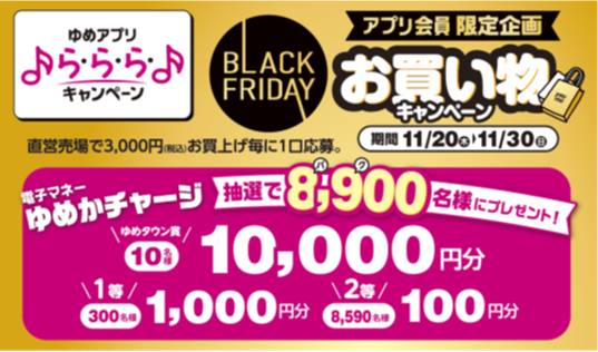 株式会社イズミ(本社:広島市東区、代表取締役社長:町田 繁樹、以下「当社」)は、当社が運営する「ゆめタウン」「ゆめマート」各店において、11月20日(木)より「BLACK FRIDAY」を開催いたします。