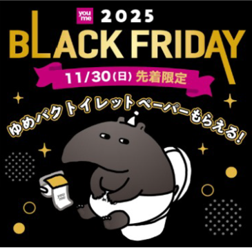 11月30日(日)先着限定「ゆめバク」トイレットペーパー進呈!ゆめタウン・ゆめマートのブラックフライデーキャラクター「ゆめバク」デザインのトイレットペーパーをプレゼントします。