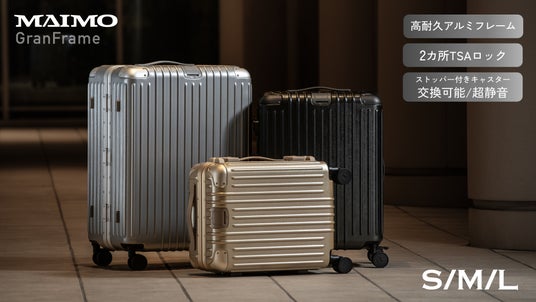 株式会社KURUKURUは、トラベルブランド「MAIMO」より、フレームスーツケース「GranFrame」(グランフレーム)の新サイズ〈M・L〉を2025年11月18日に発売いたします。好評のSサイズに加え、2泊から長期滞在まで対応できるサイズ展開に拡大し、旅や出張など幅広いシーンに合わせてより最適なサイズをお選びいただけるようになりました。