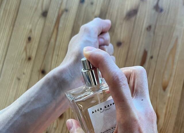 瞬時に肌へスッと溶け込むような自然さがあり、吹きつけた箇所につい何度も鼻を近づけてしまいます。