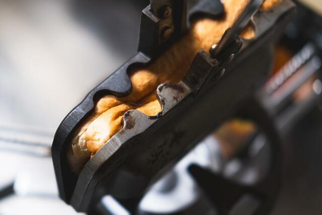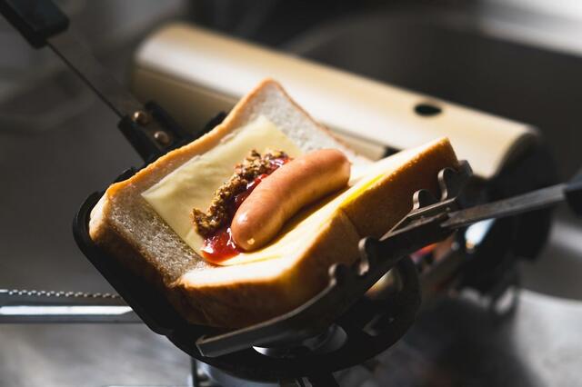 食パンの耳をギュギュッと圧着することで隙間なく閉じる仕組みなんですが、これが「ホットサンドソロ」ならではのおいしさにもつながっているんです。