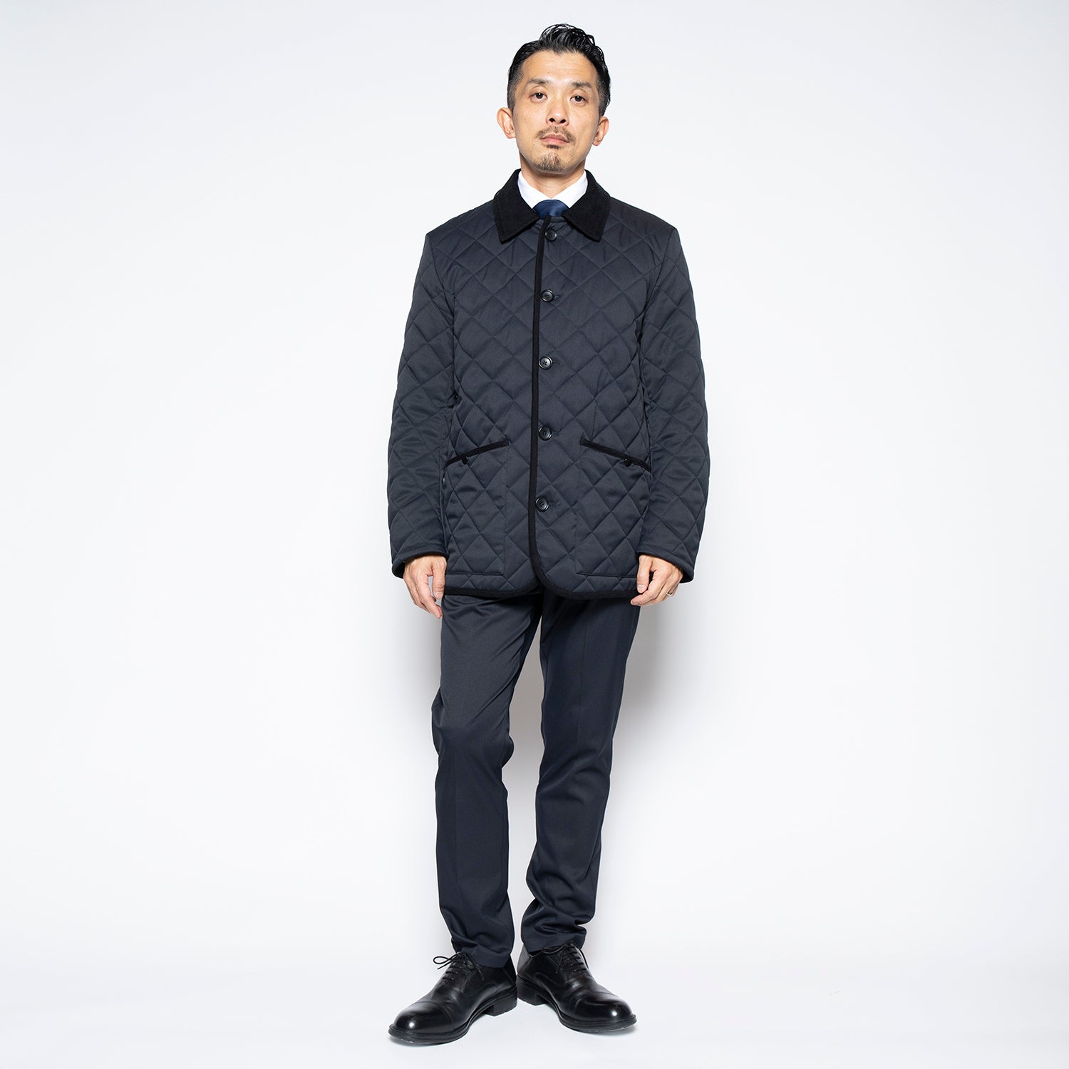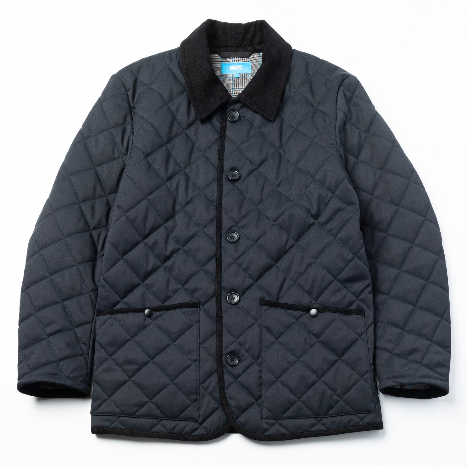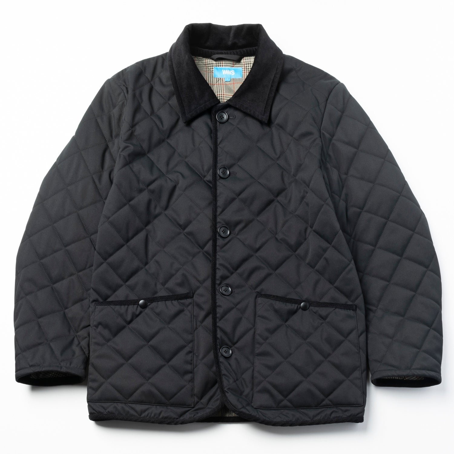 特徴:定番のダイヤモンドキルティングジャケット。襟とトリムにコーデュロイ生地、裏側に表地と異なる素材感のグレンチェックを使用し、シンプルながらにギミックのあるデザイン。