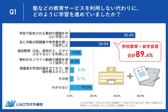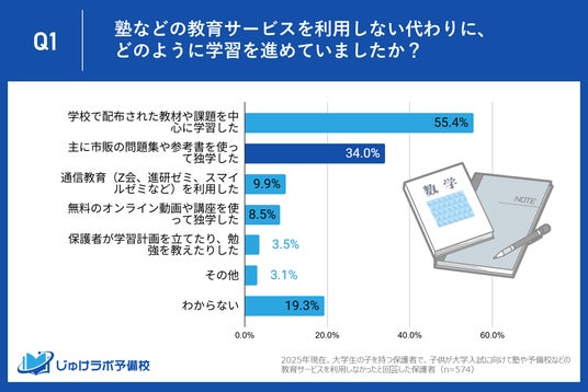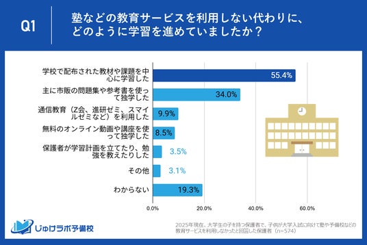 Q: 塾などの教育サービスを利用しない代わりに、どのように学習を進めていましたか?