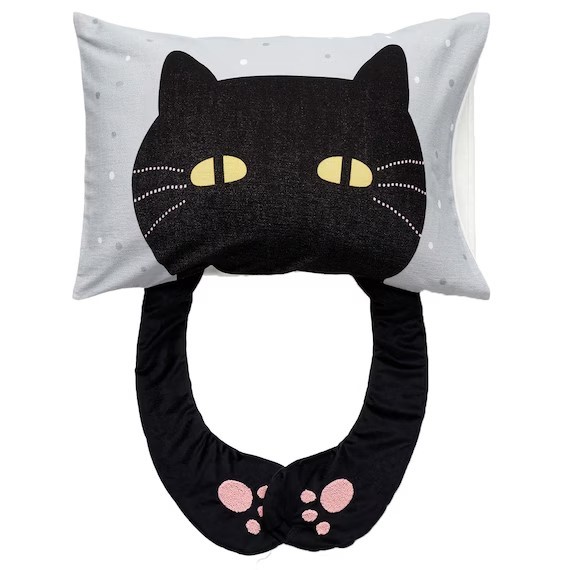 今回発売されたのは「アイマスク付き枕カバー」。デコネコバージョンでは、にゃんこの腕部分がアイマスクとなって顔を包み込み、光をしっかりと遮ってくれる画期的な仕組みになっています。