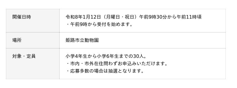 メールアドレス:dobutuen-mail@city.himeji.lg.jp