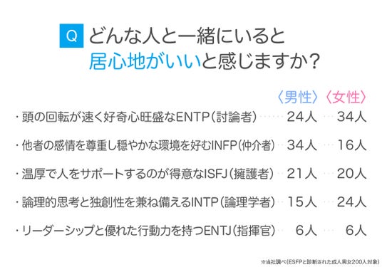 ESFP(エンターテイナー)と診断された成人男女200人に、どんな人と一緒にいると居心地がいいか尋ねてみました。