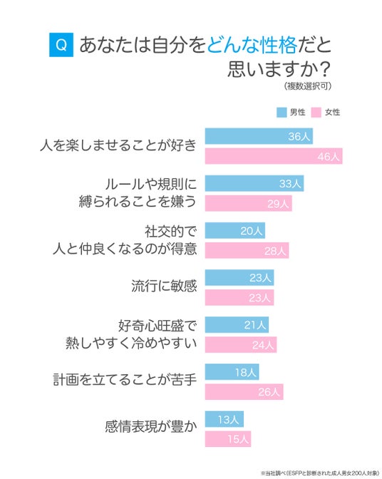 調査対象:MBTIテストで「ESFP」と診断された成人男性・成人女性