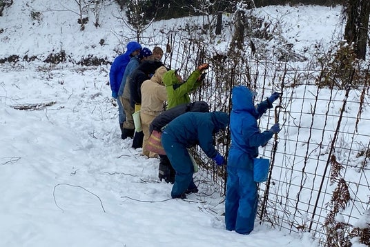 ・春作業 獣害防止柵の設置・土蔵の雪囲い撤去