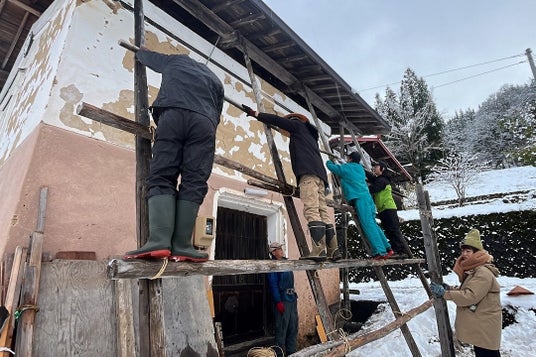 今回は、毎年大雪で閉ざされてしまう同地区の雪が降る前の冬支度として、石積み棚田をイノシシ等の野生鳥獣から守るための獣害防止柵の撤去、板倉で有名な種蔵唯一の土蔵の雪囲いを実施します。