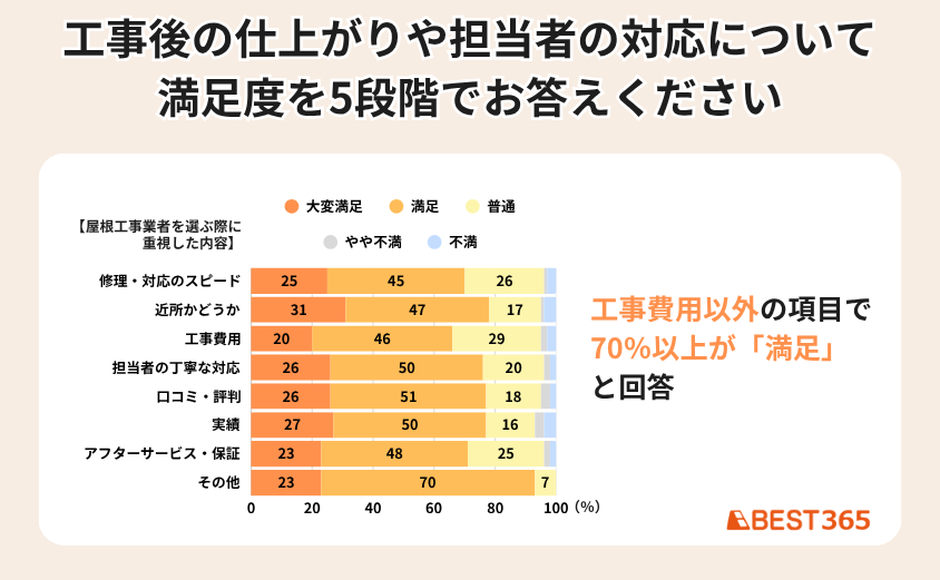 アンケート結果から、顧客満足度を左右するのは「工事費用」ではなく、「安心感」であることが見えてきました。