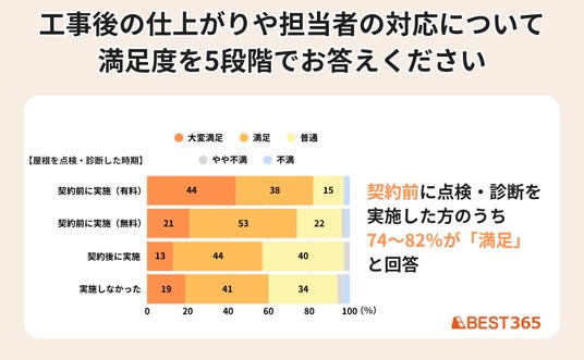 一方で、契約前に点検・診断を受けない場合でも、約6割の方が「満足」と回答しています。また、点検・診断したうえで工事したにもかかわらず、不満を感じる人が一定数存在します。