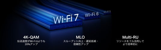 - 最新世代Wi-Fi 7テクノロジー対応*4:高速*5、低遅延*6な新時代のWi-Fi技術を採用