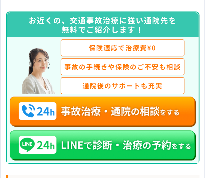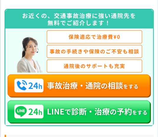 画面をスクロールせずに相談できるため、初めて事故治療を経験する方でも迷わず必要な情報へ進めます。