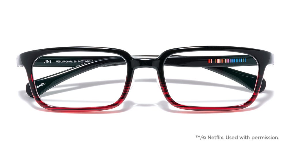 今回のコラボレーションは、快適でストレスフリーなかけ心地を追求したシリーズ“おうち時間に着替えるメガネ”JINS HOME(R)から、Netflixの作品ジャンルにインスパイアされた全6型12種のメガネを展開します。ラインアップには、コメディ映画のワンシーンを思わせるユーモラスでアイコニックな小ぶりのラウンドフレームや、物語の鍵を握るミステリアスな人物を連想させる印象的なダブルブリッジフレームなど、気分が高まるデザインを取り揃えます。さらに、動画視聴のお供にぴったりなブランケット型のメガネ拭きもご用意しました。Netflixを象徴するレッドと洗練されたブラックを配したデザインは、軽やかで快適なかけ心地とともに、おうち時間のリラックス体験をサポート。スクリーンの向こうの物語を、より快適に、より深く楽しむための新しい視聴スタイルを提案します。