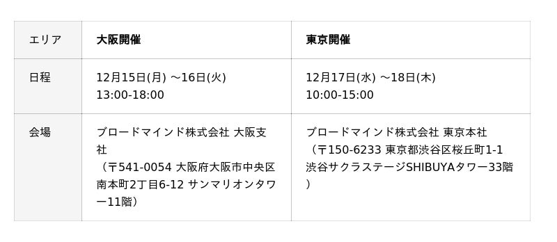 「金融の力を解き放つ」というパーパスのもと、ライフプラン実現を支援する金融サービスを開発・提供するブロードマインド株式会社は、好評につき2DAYSインターンシップの12月追加開催を決定いたしました。