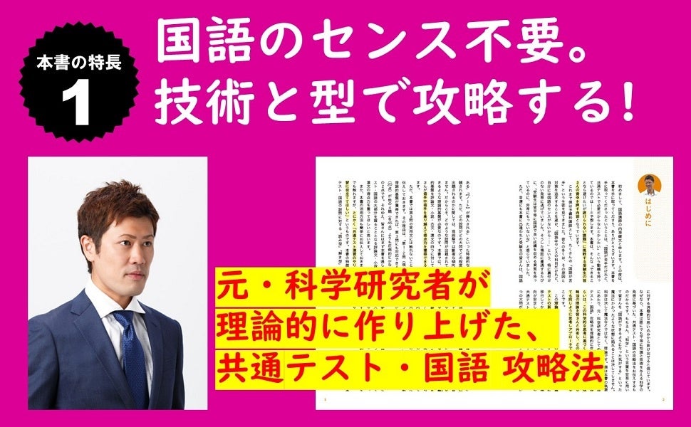 2023年と2024年に実施された共通テストの問題をベースに解法を教えます。元科学研究者の著者が考案した理論的攻略法で、どんな長文・設問にも対応可能です。