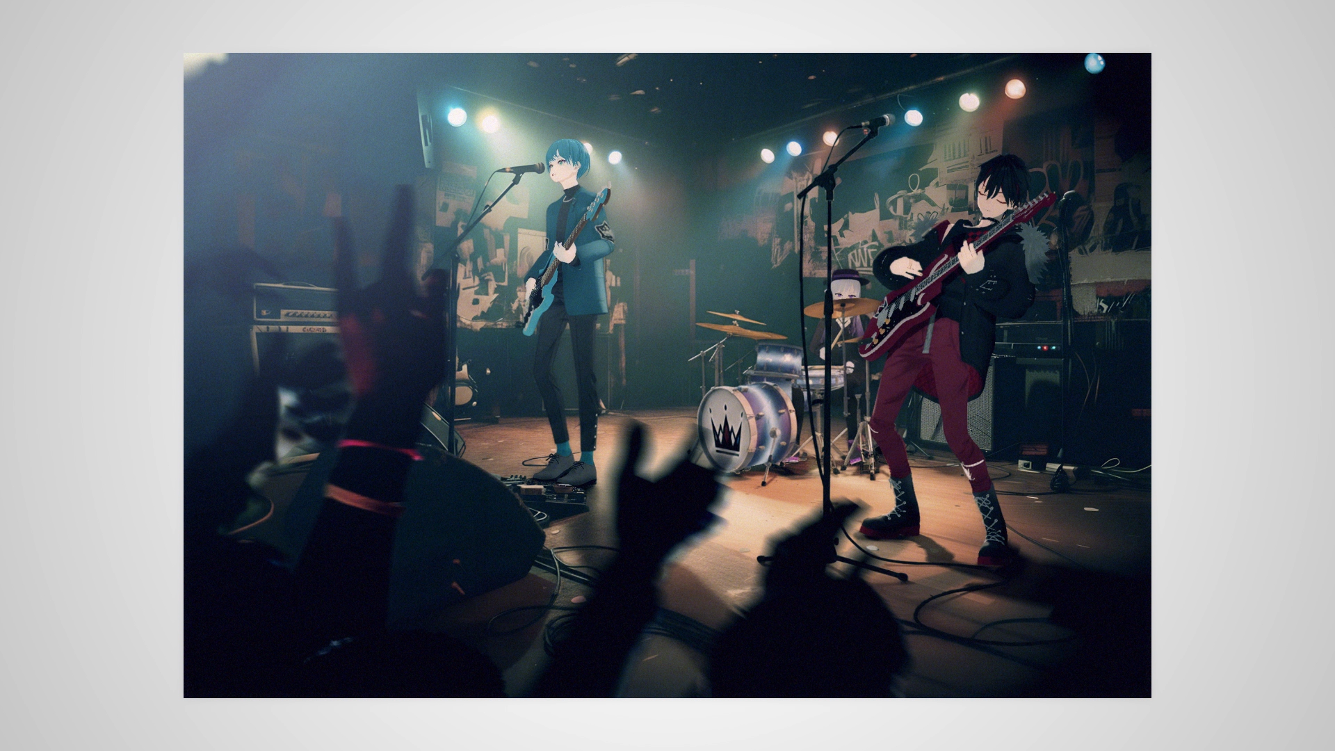 メインカットのバンド演奏シーンは、「ポラポリポスポ」の独自技術、「ゼロエディットモーションキャプチャー」により、ギター・ベースの弦を押さえる指先や、ドラムのシンバルの動きまで精巧にCGで表現しています。