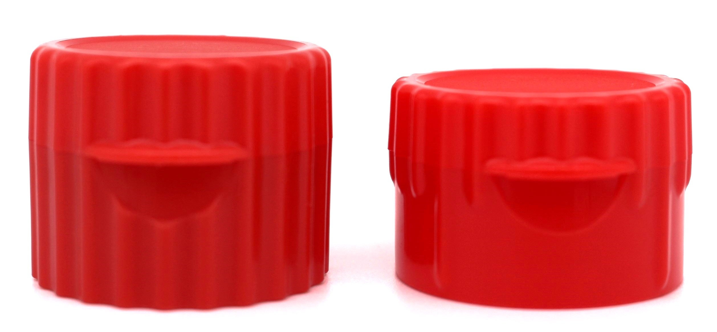 左現在のキャップ 右軽量化キャップ 軽量化キャップは出し口が低く、手前にある