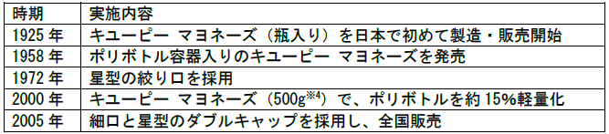 【参考】 キユーピー マヨネーズの主な容器改良の取り組み