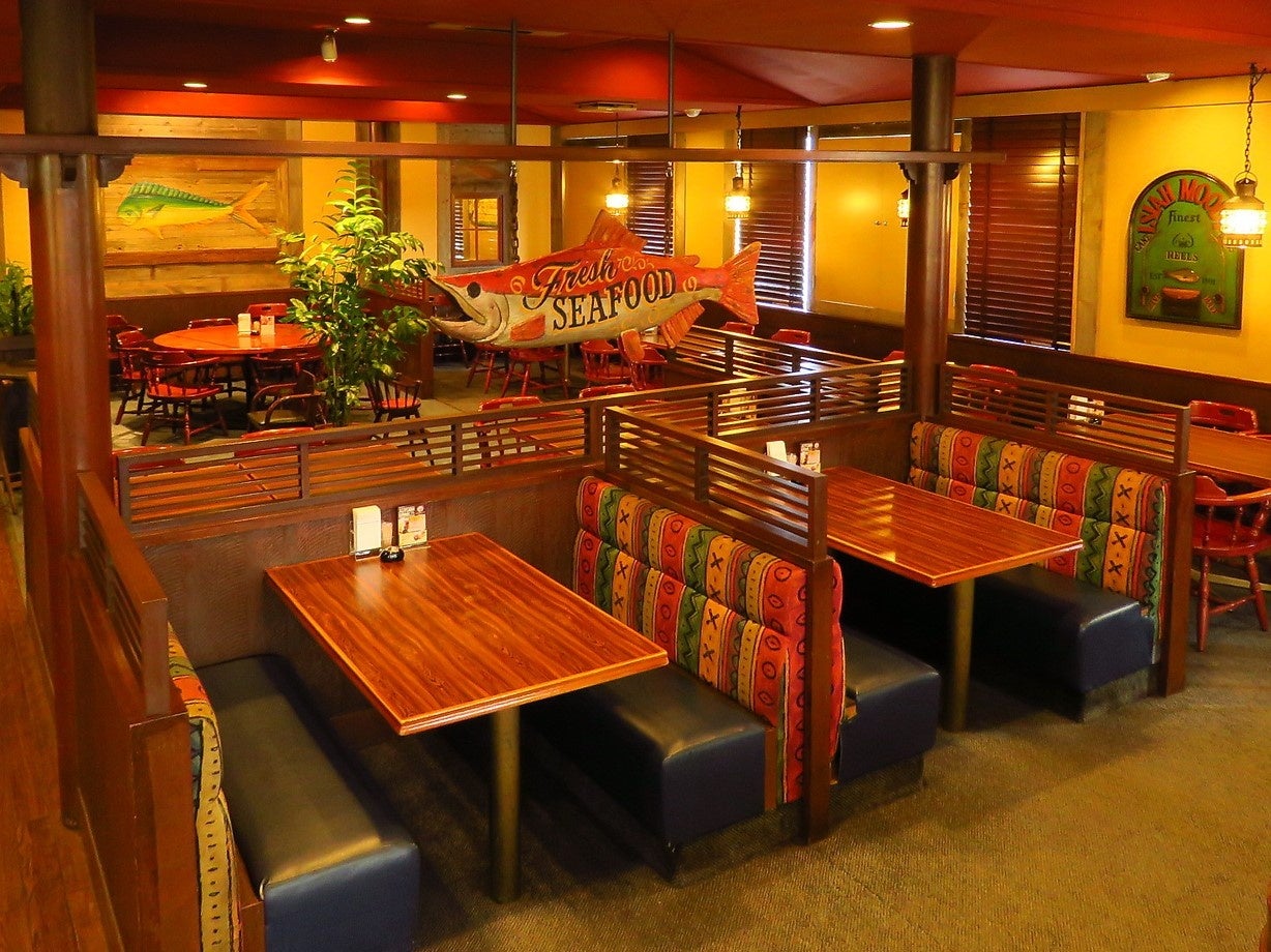 店内は「アメリカの漁師小屋」をモチーフにした内装を施しています。オールドアメリカンな雰囲気が漂う店内は海や港を連想させるモチーフを効果的に使用。まるでテーマパークに来たかのような非日常感を味わうことが出来ます。席間も広く、様々なタイプのお席をご用意しているため用途に合わせてお食事をお楽しみ頂けます。