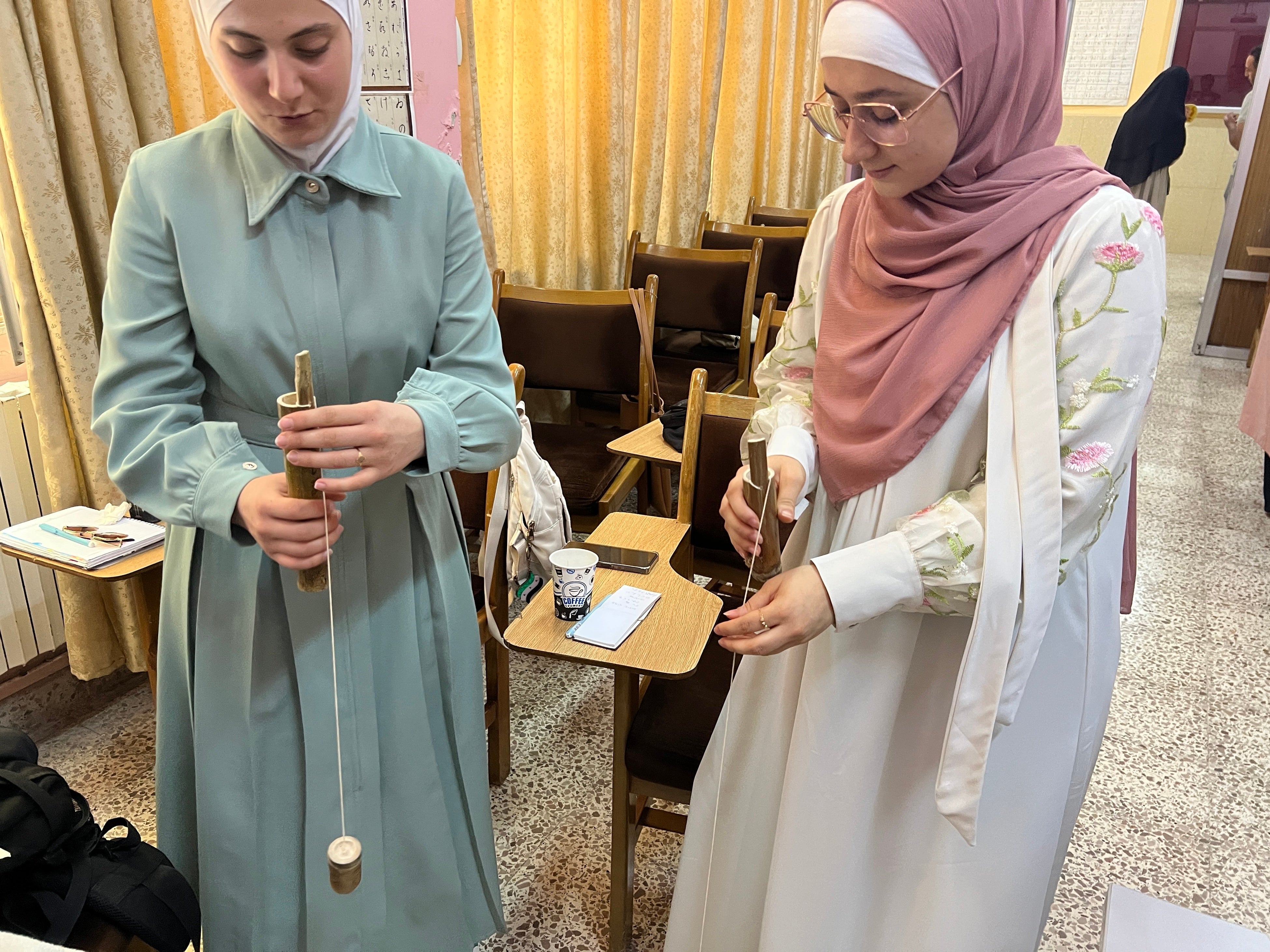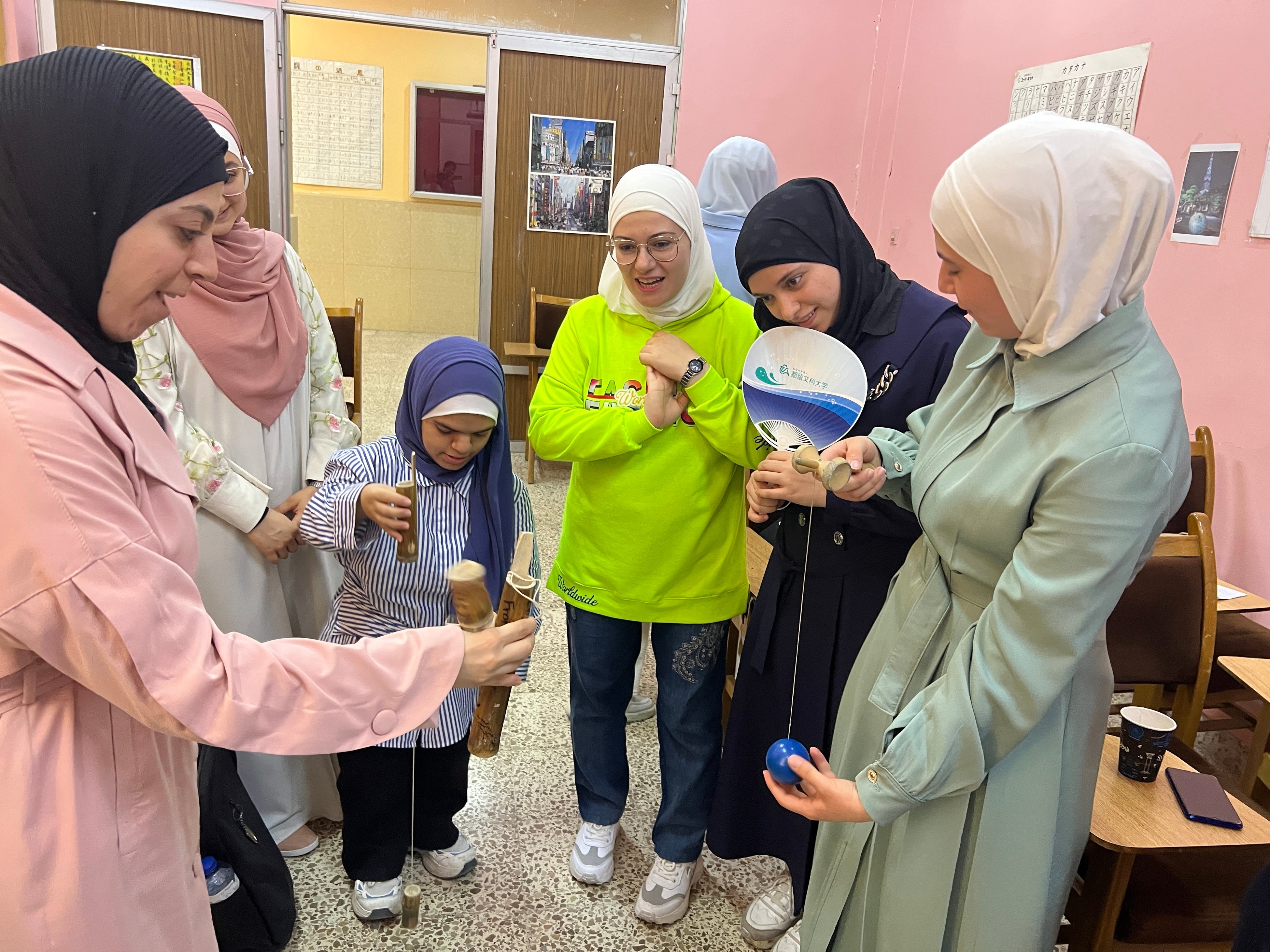 その中で、日本語を学ぶアレッポ大学の学生たちが、竹けん玉を題材に
