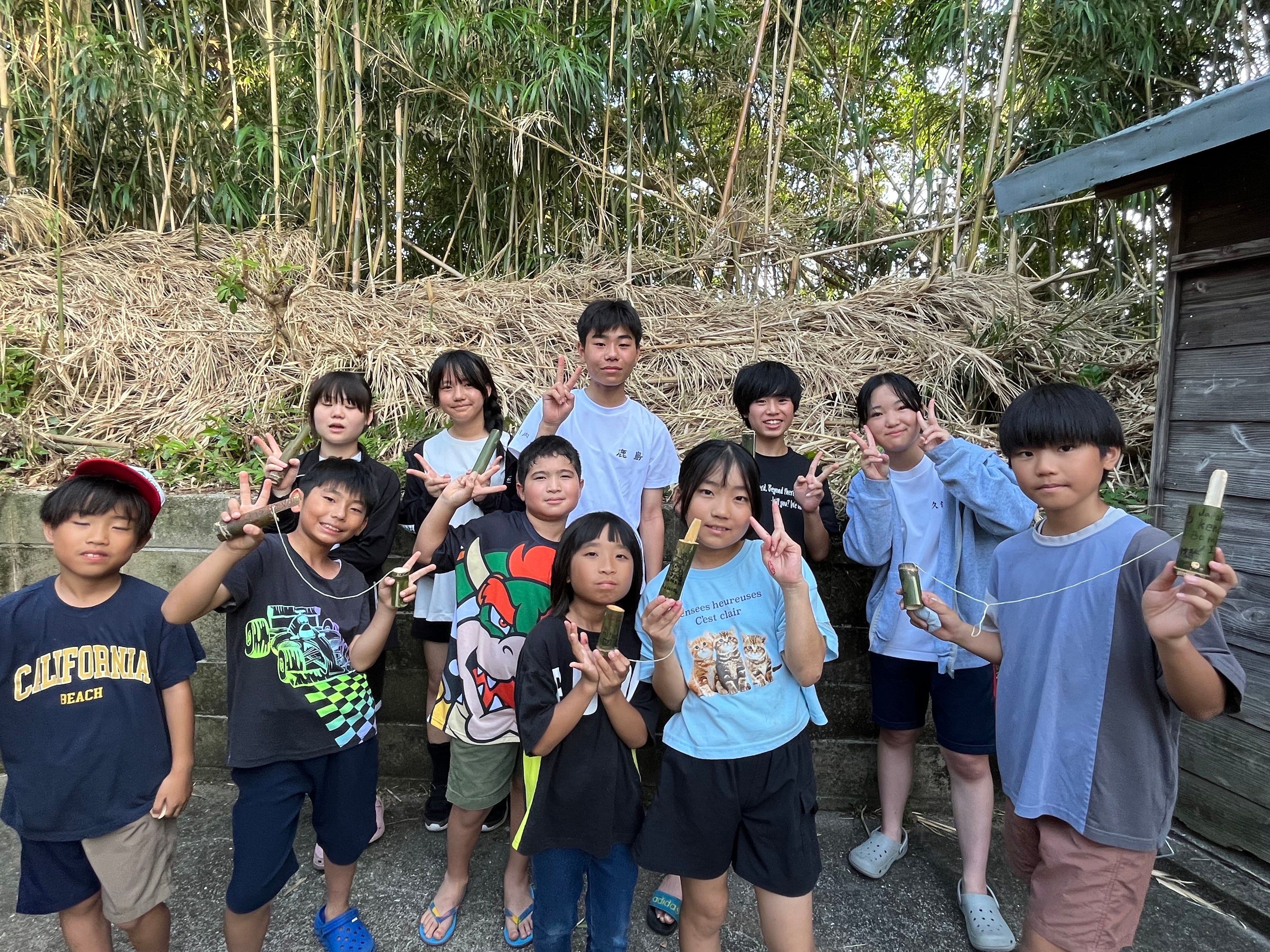 7月の初回講演で世界の現状を知った子どもたちが、「今、自分にできること」として生み出した 竹けん玉・ハマギギョーザ・大名筍 が、シリアとルワンダに届けられ、その様子と現地からの感謝メッセージが、島の子どもたちに“里帰り”する形で共有されました。
