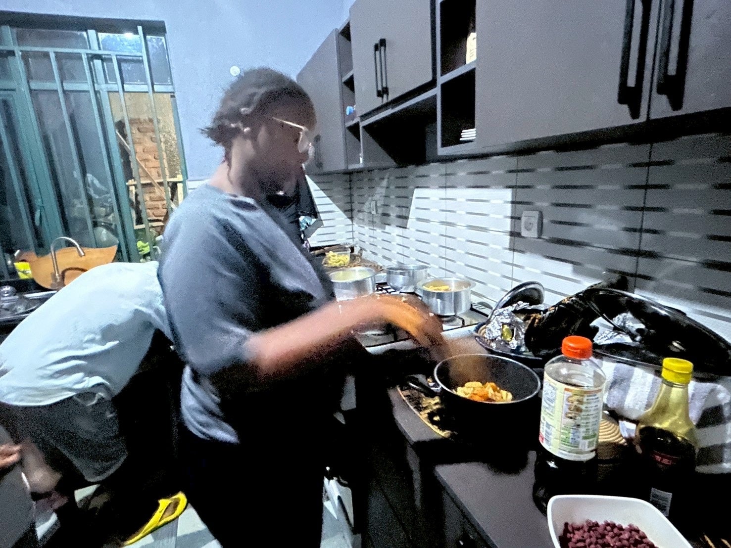 初めての煮物に挑戦するルワンダのパートナー
