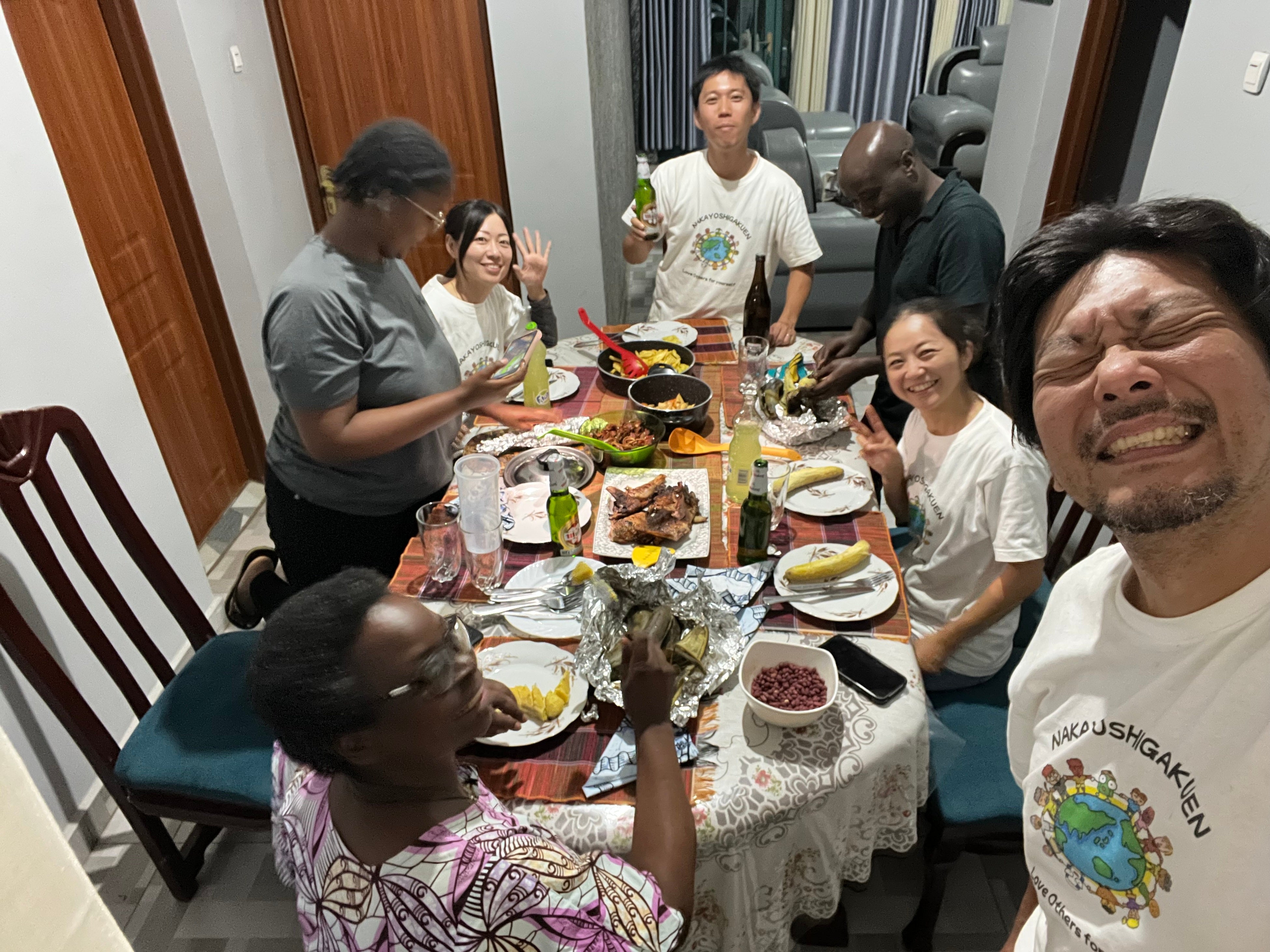 ルワンダのジェノサイドサバイバー達と大名筍を囲むなかよし学園メンバー達